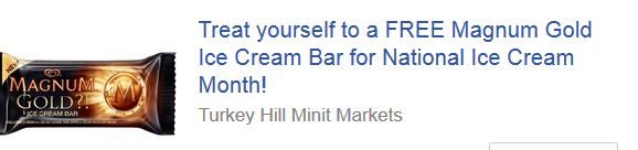 Free Magnum Gold Ice Cream Bar at Turkey Hill stores